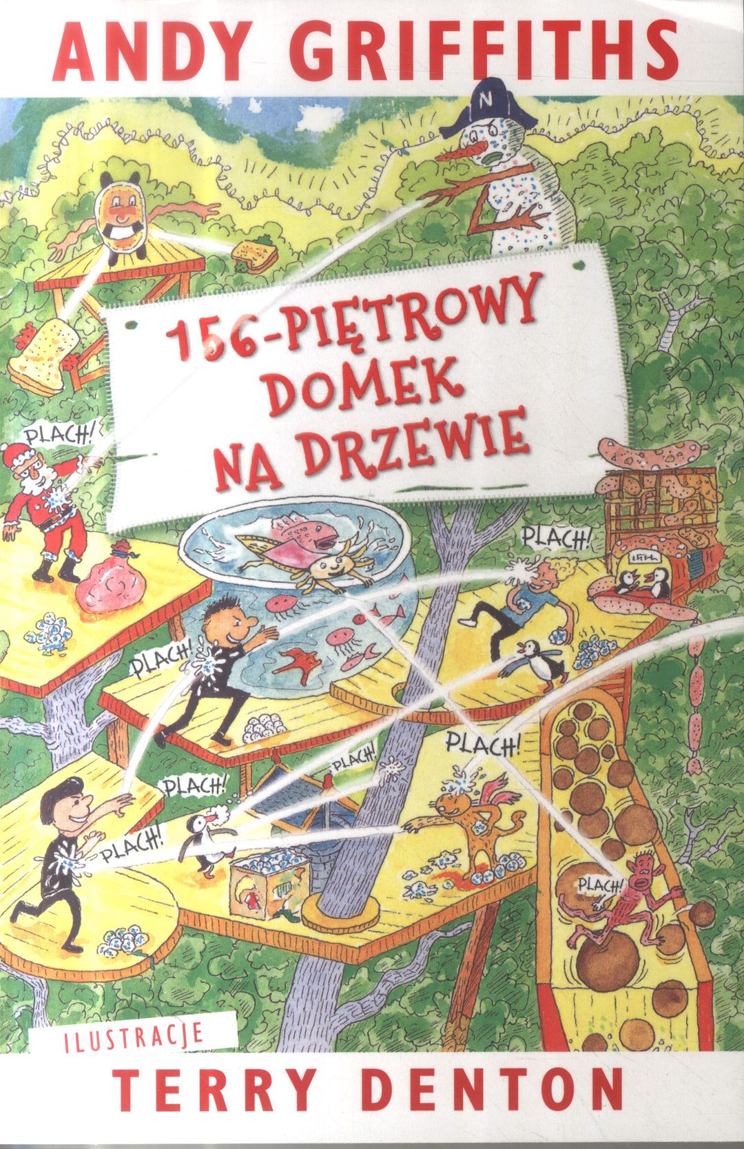 Dwunasty tom najśmieszniejszej serii od czasów „Dziennika cwaniaczka”! Andy i Terry świętują Boże Narodzenie w stupięćdziesięciosześciopiętrowym domku na drzewie (mieli stuczterdziestotrzypiętrowy, ale się rozbudowali). A ten domek jest najfajniejszy na świecie! Znajdziecie tu między innymi: studnię życzeń, obóz trepingowy, biuro rzeczy znalezionych, biuro zgubionych serdelków, piętro superśmierdołek oraz zadziwiający wmyślachczytający kanapkomat, który dokładnie wie, na jaką kanapkę macie ochotę, i właśnie taką wam robi! No, na co czekacie? Właźcie!